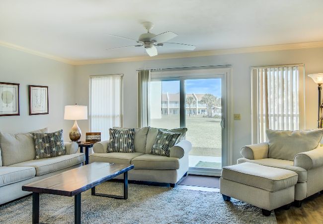 Come enjoy our tastefully 1-bedroom condo located just 1 1/2-minute walk to the beautiful white sandy beach. We can sleep up to 6 with King bed in the master built-in bunks that are recessed into a hallway alcove and a queen sleep sofa in the living room. Condo is first floor and features a fully stocked kitchen, with a patio overlooking the grass courtyard and resort pool that is cooled in the summer and heated seasonally.