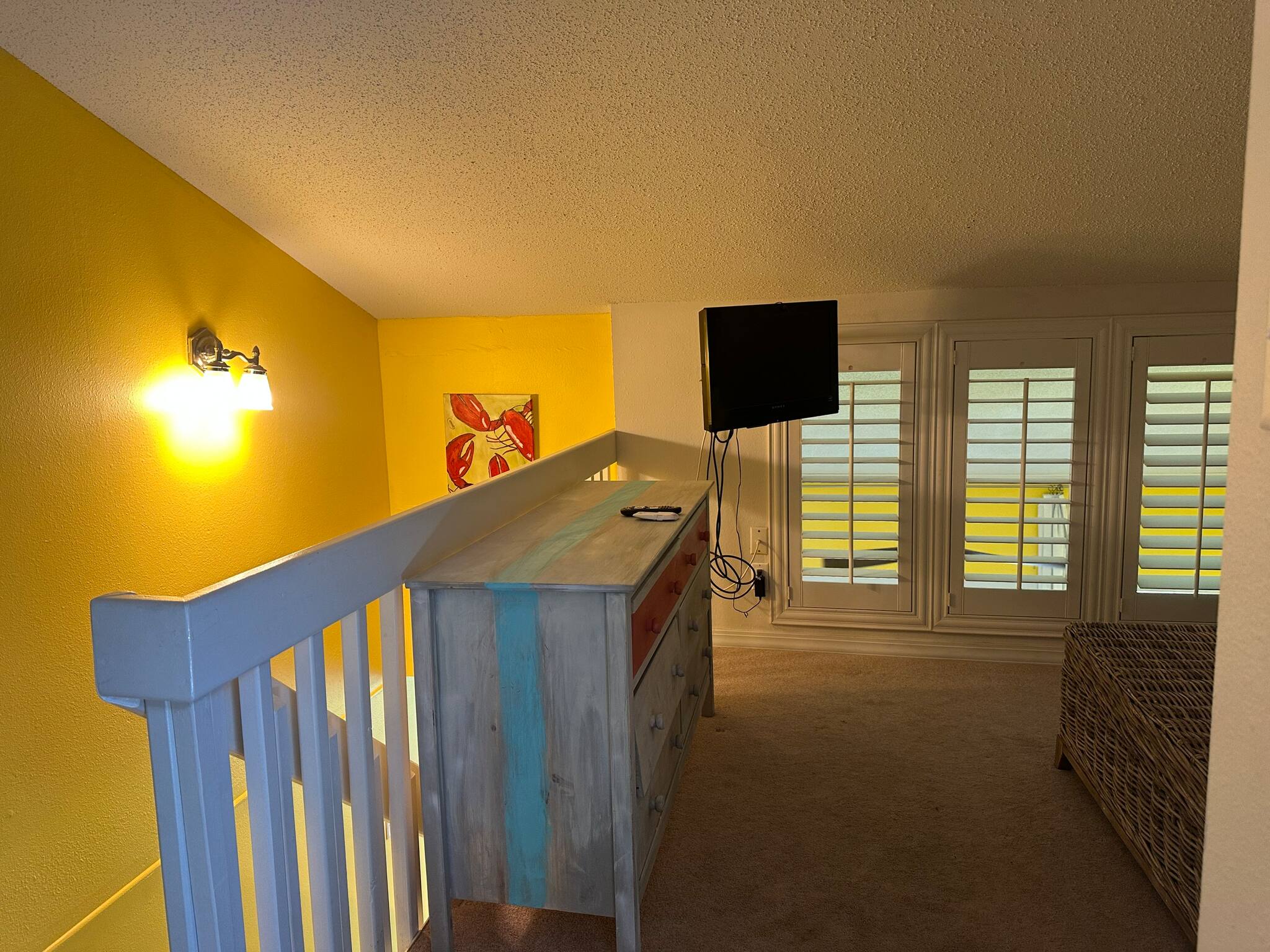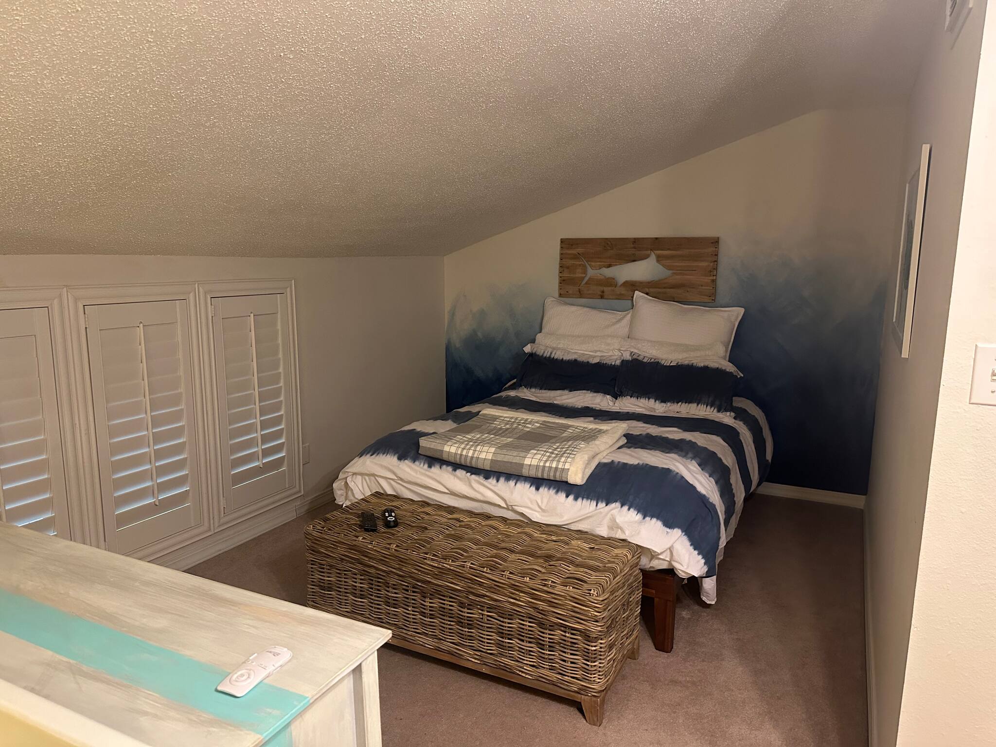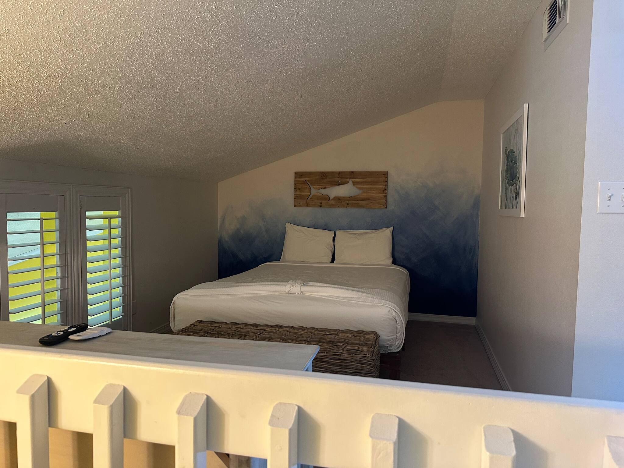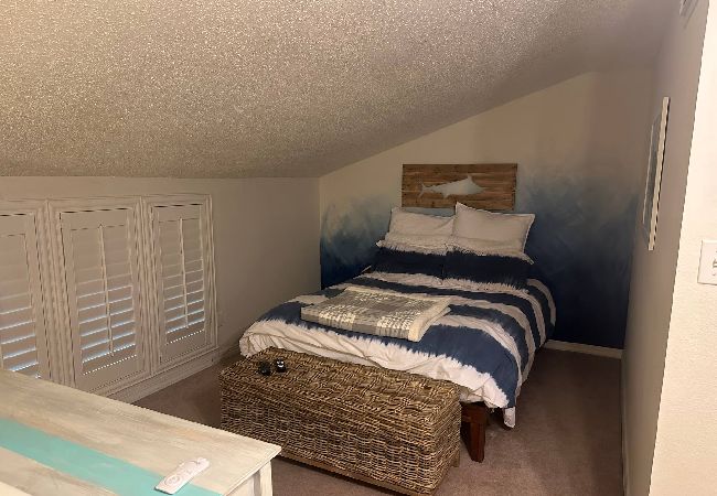 The upstairs loft is furnished with both a king-size and full-size bed in addition to a second full bath.