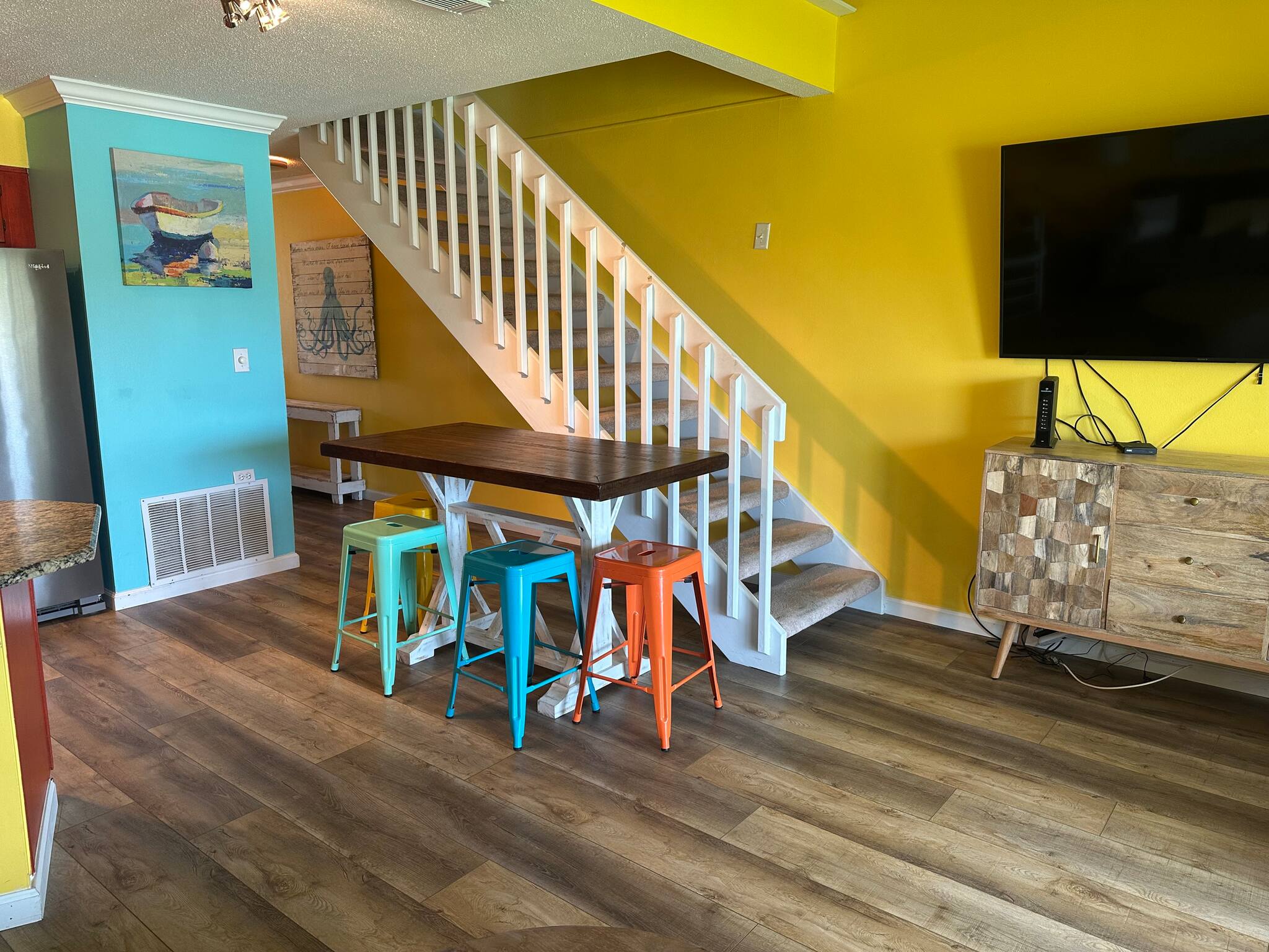 Comfortable Living Area: Kick back and relax in the spacious living area, featuring cozy furnishings, a flat-screen TV, and plenty of space to gather with loved ones.