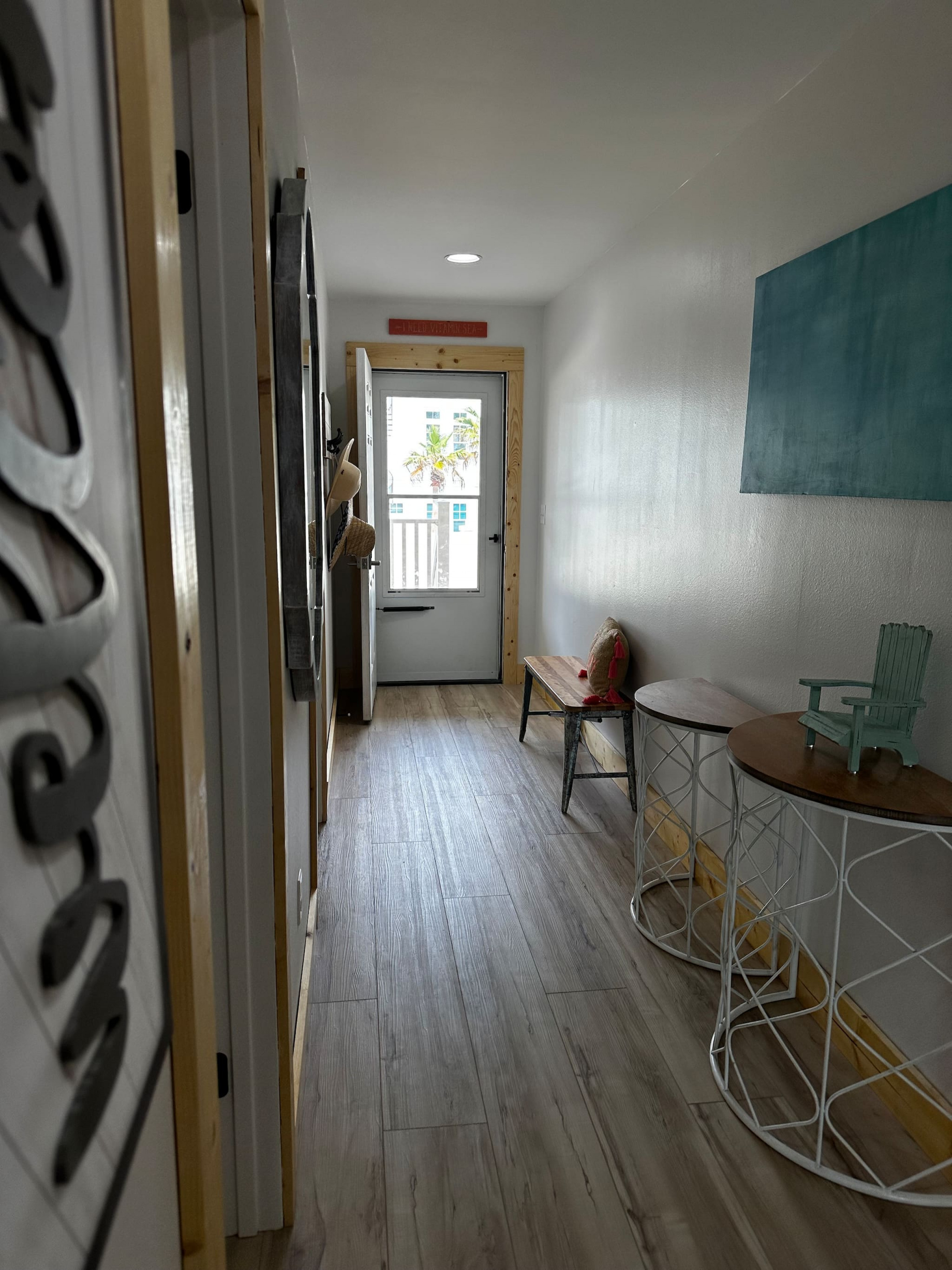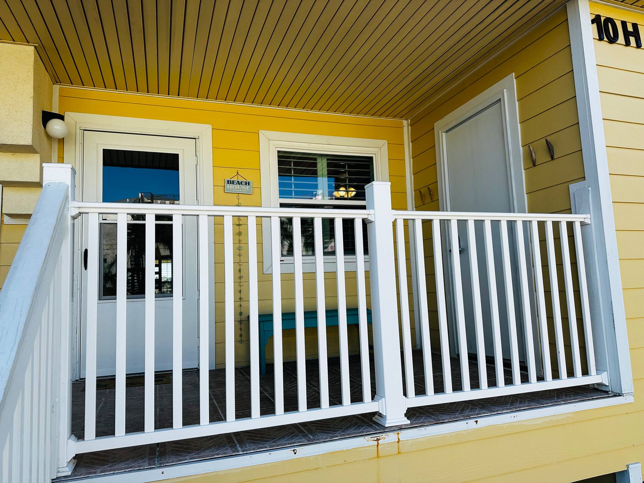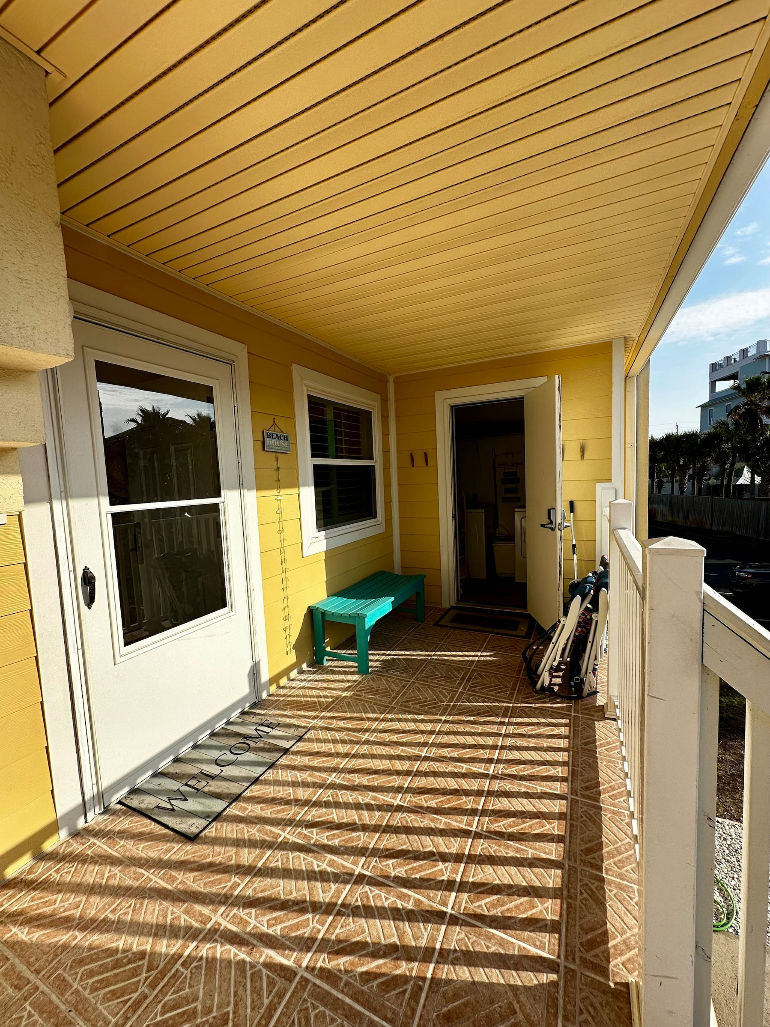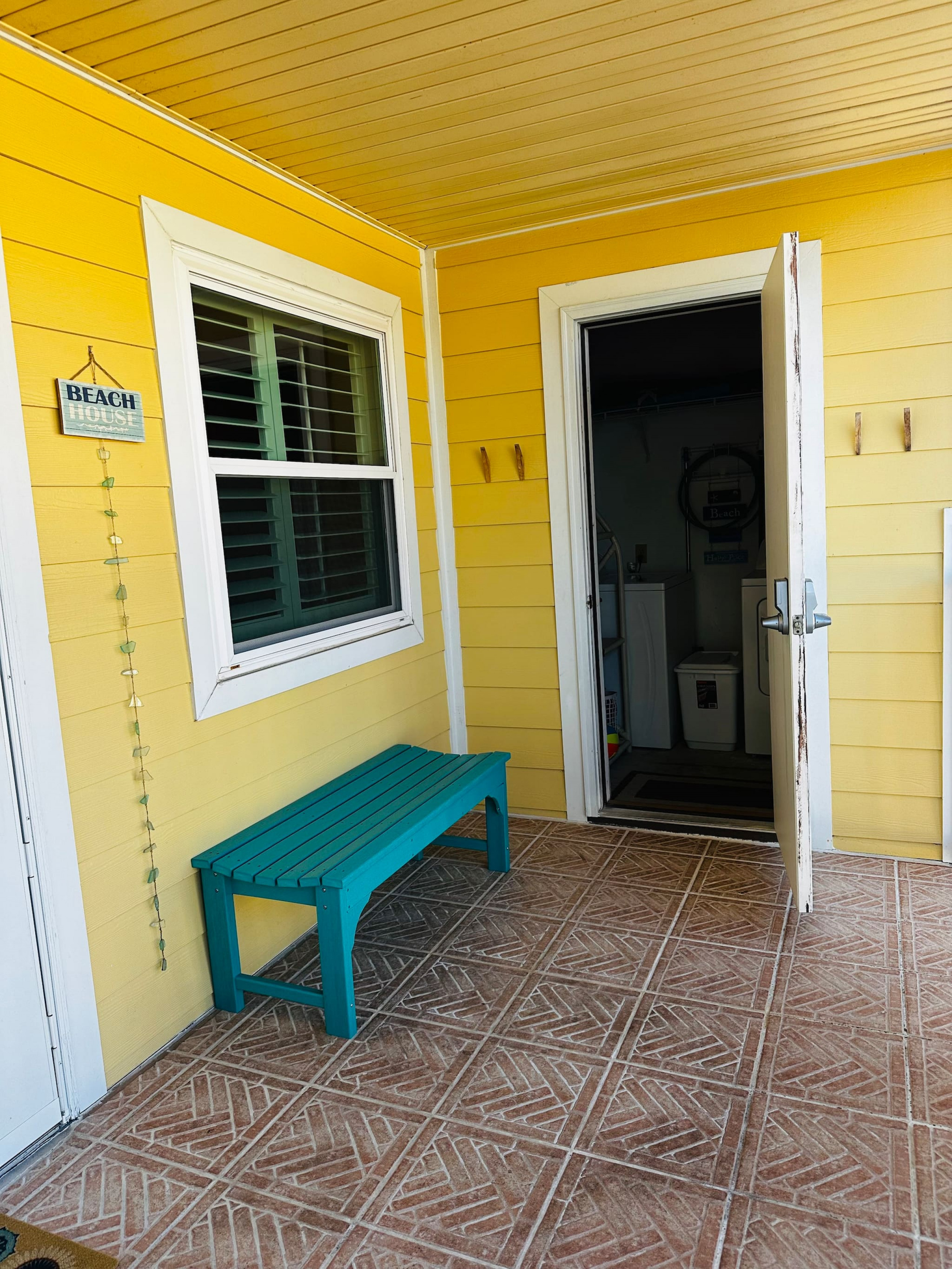 A laundry room (on the front balcony!) with some basic beach gear ready to go