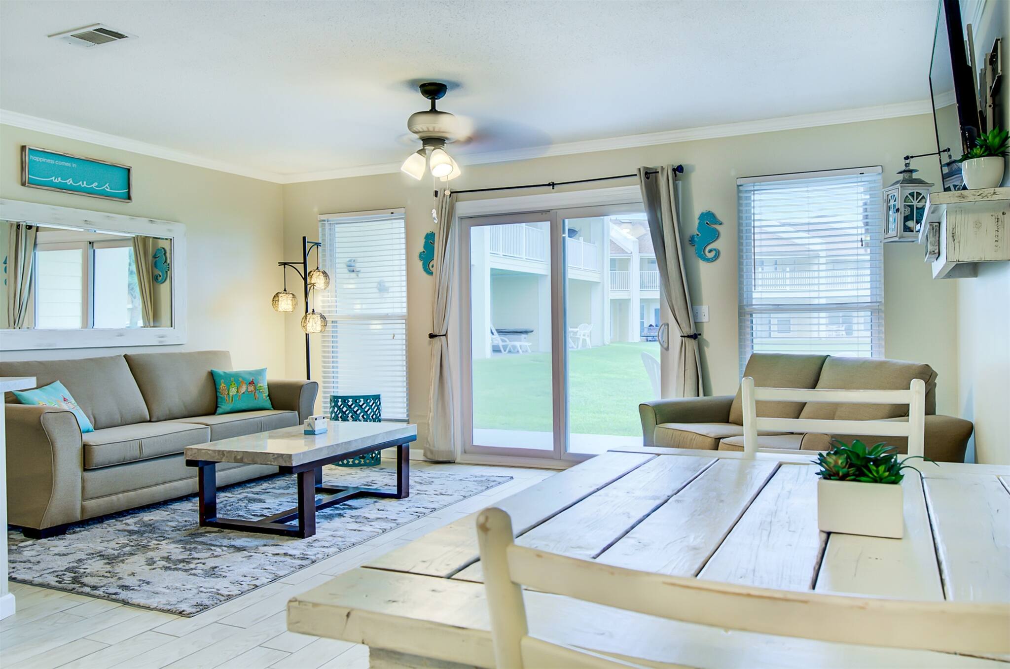 The charming and open 9B vacation condo in Destin offers its guests a first floor unit with one bedroom and a private bath.