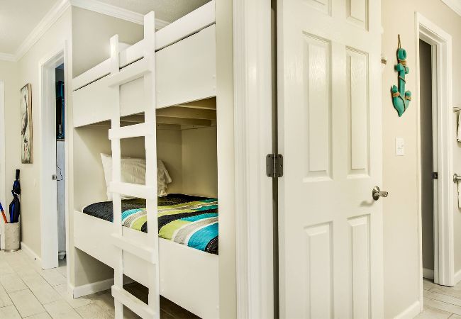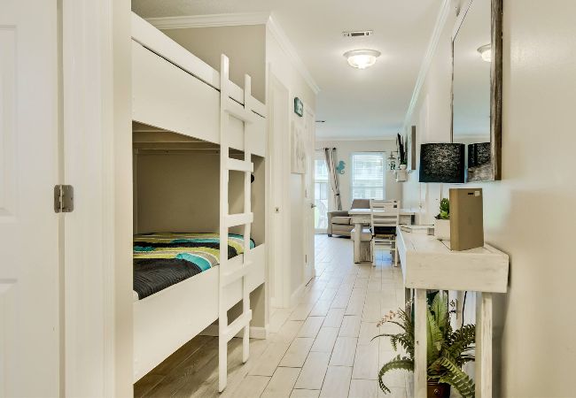 We welcome you to our little piece of heaven located only steps from the beautiful Gulf of Mexico. Offering a fresh, bright & cozy condo sleeping upto 6. Perfect for families, couples or friends in need of a getaway. The master bedroom displays a comfy king bed with a tv & bathroom access. Full size built in hallway bunks that are perfect for kids or adults and a queen sofa sleeper in the family room. Full bath with a shower/tub combo. Enjoy the large family room with plenty of seating and a smart TV. The fully equipped kitchen has all the amenities to prepare meals & enjoy meals. The dining table seats 4 and the breakfast bar seats 2. Private fullsize washer and dryer and the laundry area has plenty of space to store your beach supplies.