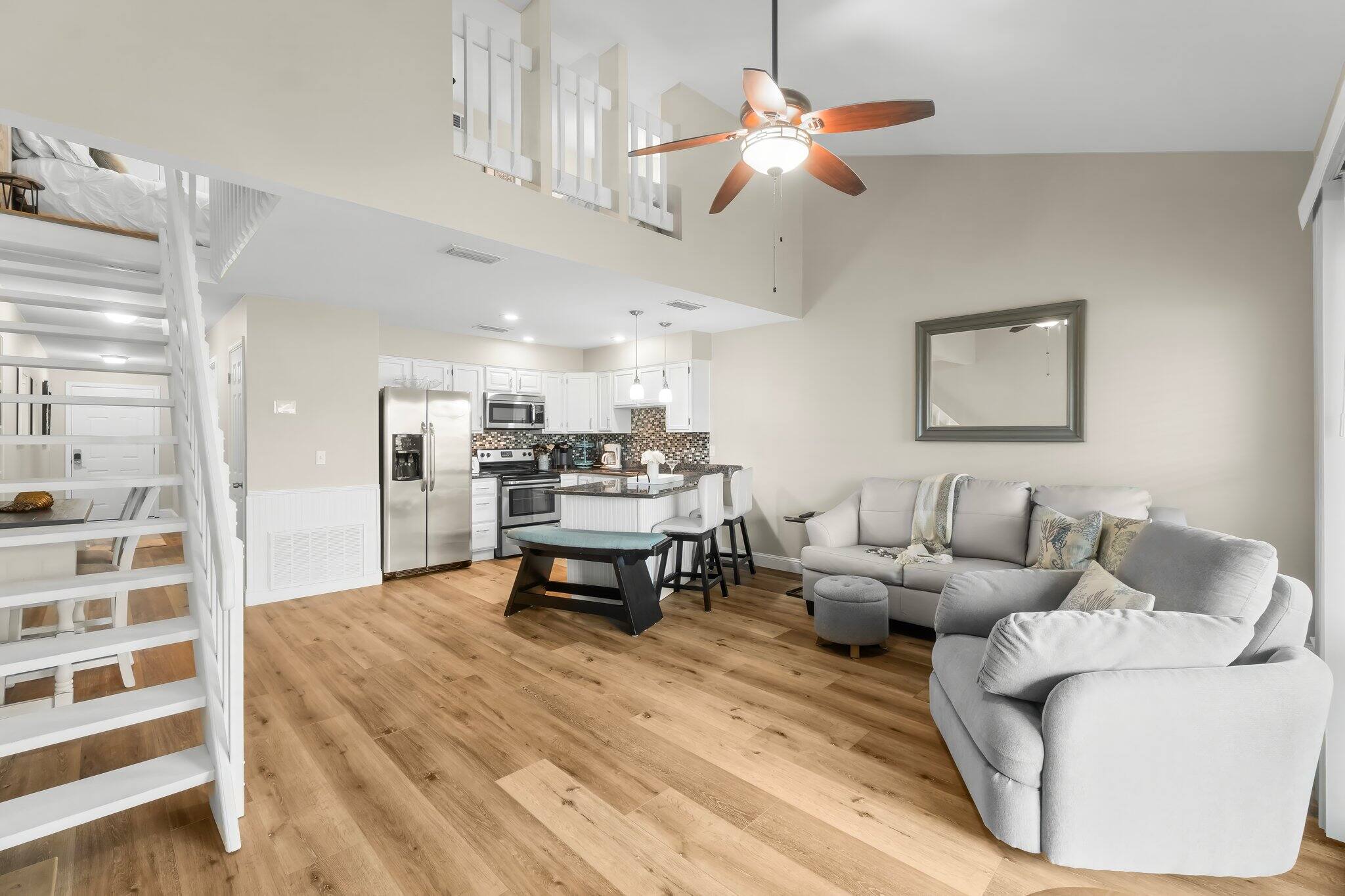 Welcome to your perfect beach getaway in beautiful Destin, Florida! This newly refreshed 2-bedroom loft condo is ideally located just 300 feet from private beach access, making it the perfect retreat for sun-seekers and ocean lovers. This condo has undergone a complete refresh this winter, featuring new paint, flooring, added furniture, and brand-new mattresses on all beds to ensure a comfortable stay. Spacious Living Area- Relax and unwind with a 60" HD TV and cozy seating. Modern Granite Kitchen - Fully stocked with full-size appliances, everything needed to prepare and serve home cooked meals. Sleeps up to 8 - comfortable bedding for families and groups. Your rental includes Complimentary Wi-Fi & Cable TV so you can stay connected and entertained. In unit Washer and Dryer - Pack light and keep clothes fresh.