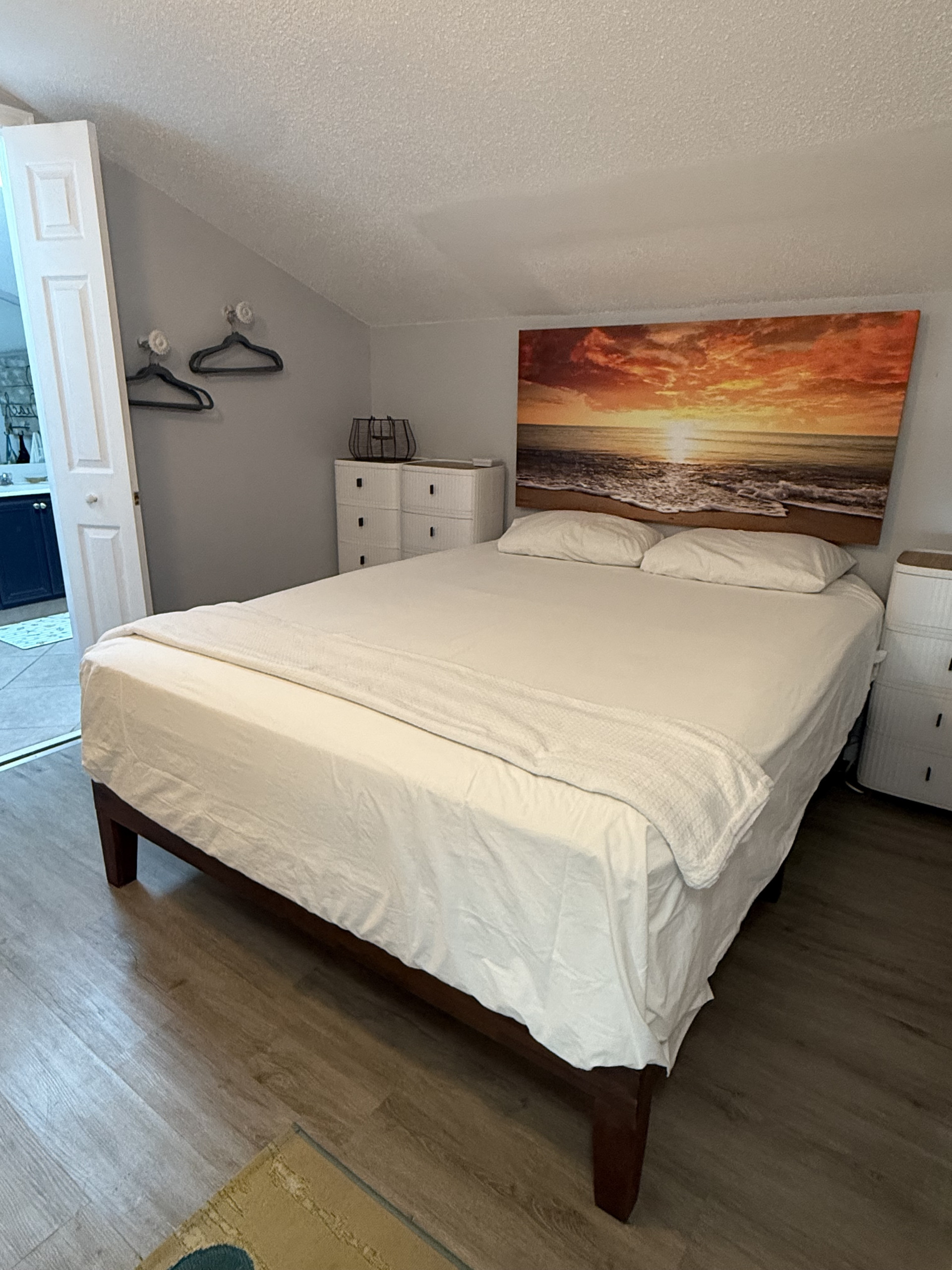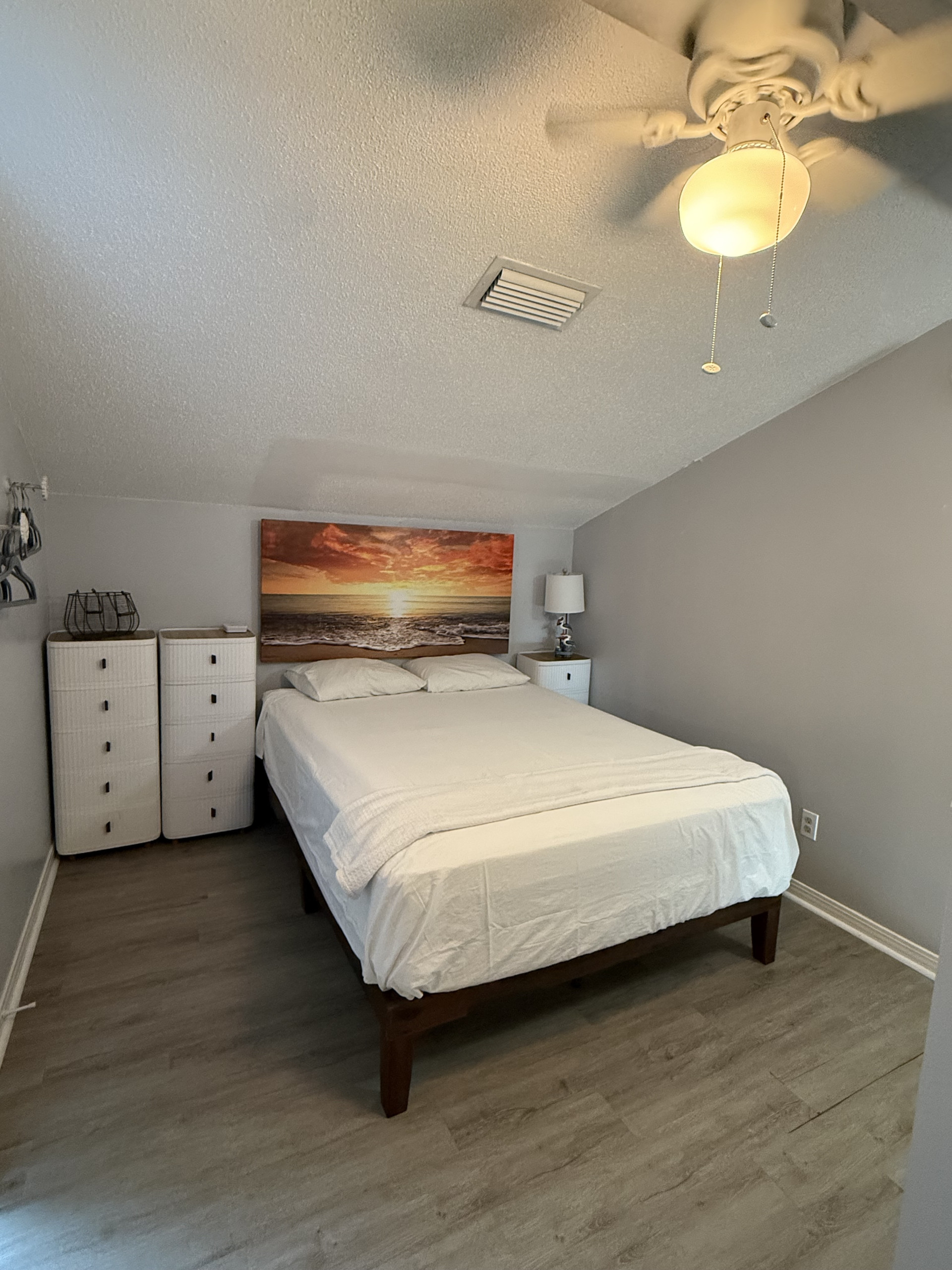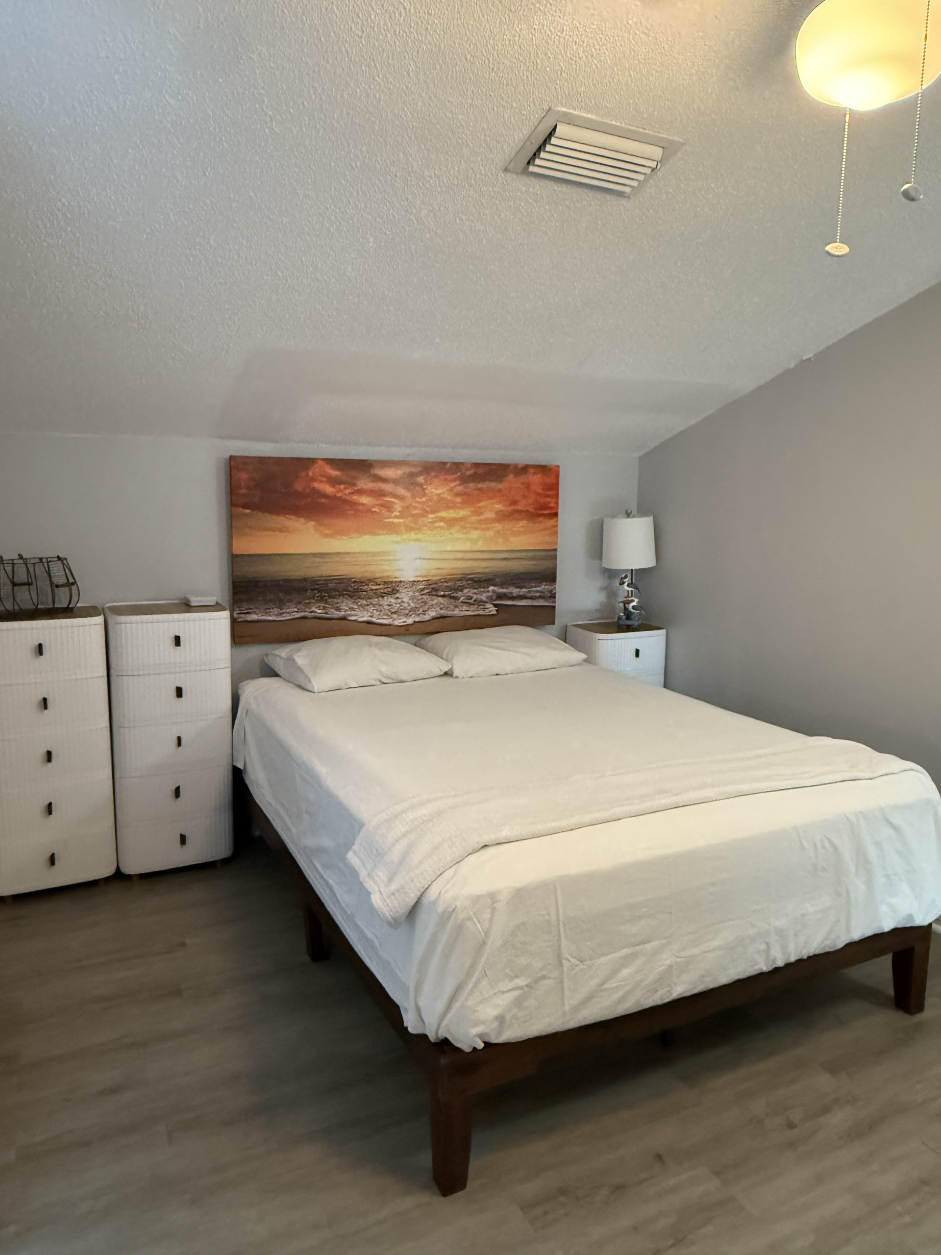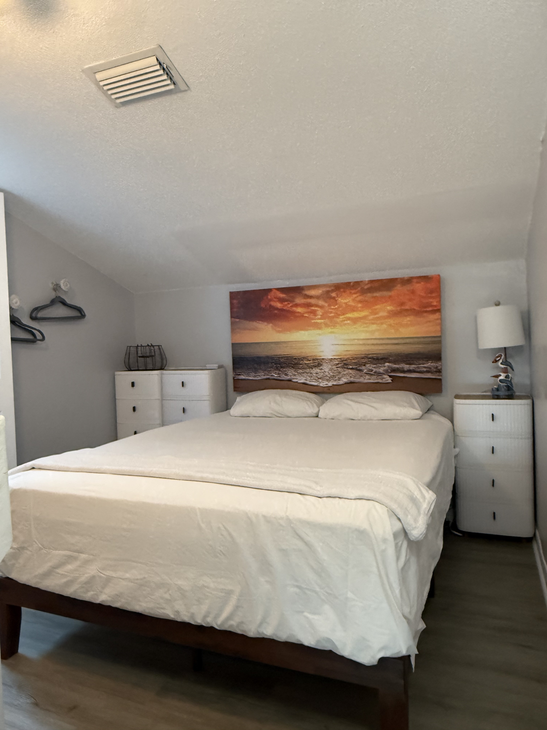 The upstairs loft is furnished with both a king-size and full-size bed in addition to a second full bath.