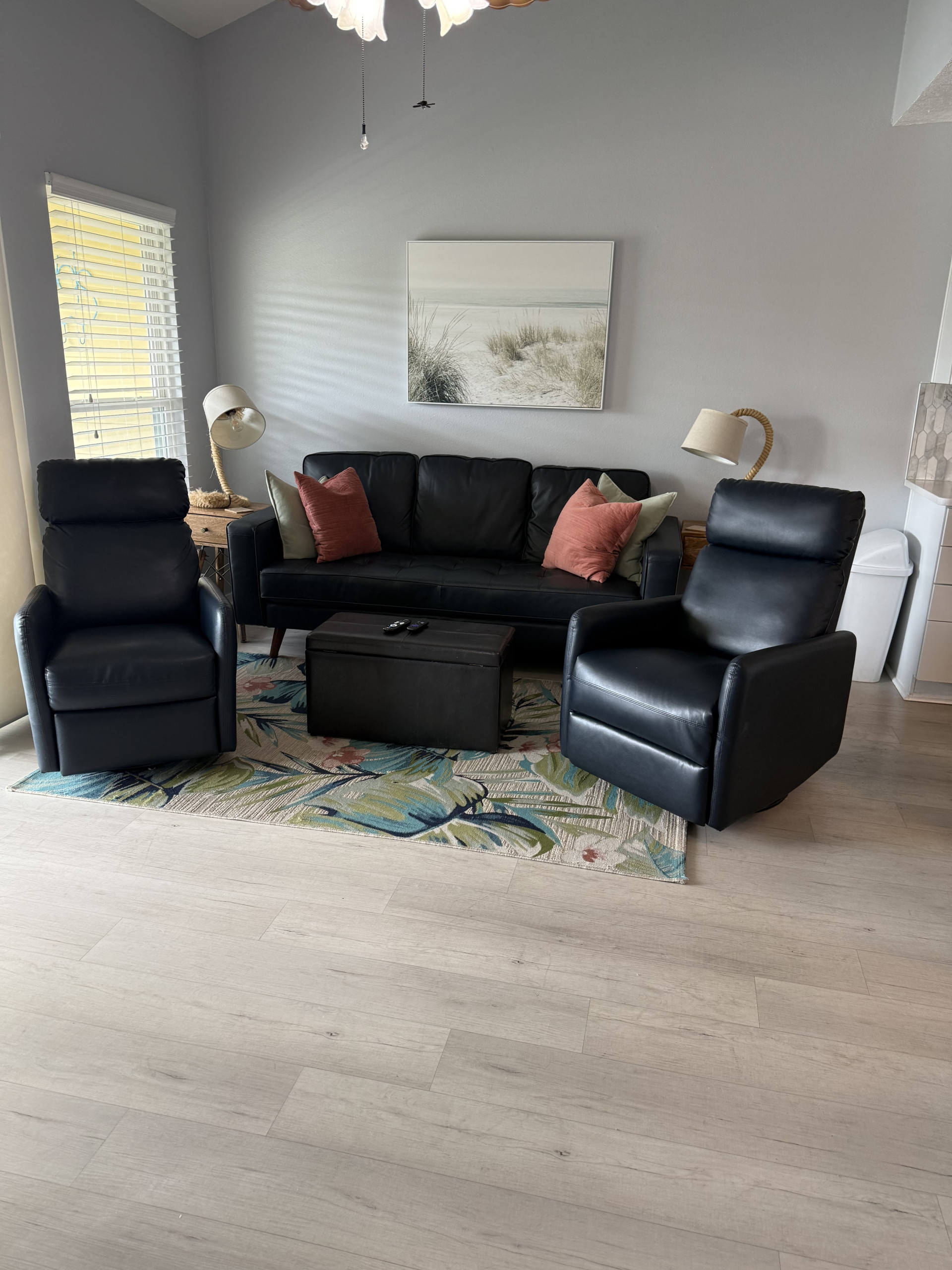 The home boasts modern amenities designed to enhance your stay, including central heating, air conditioning, and high-speed WiFi. The fully equipped kitchen comes complete with essential appliances like a stove, refrigerator, oven, microwave, dishwasher,Keurig and drip coffee machines, and toaster, allowing you to prepare delicious meals with ease.