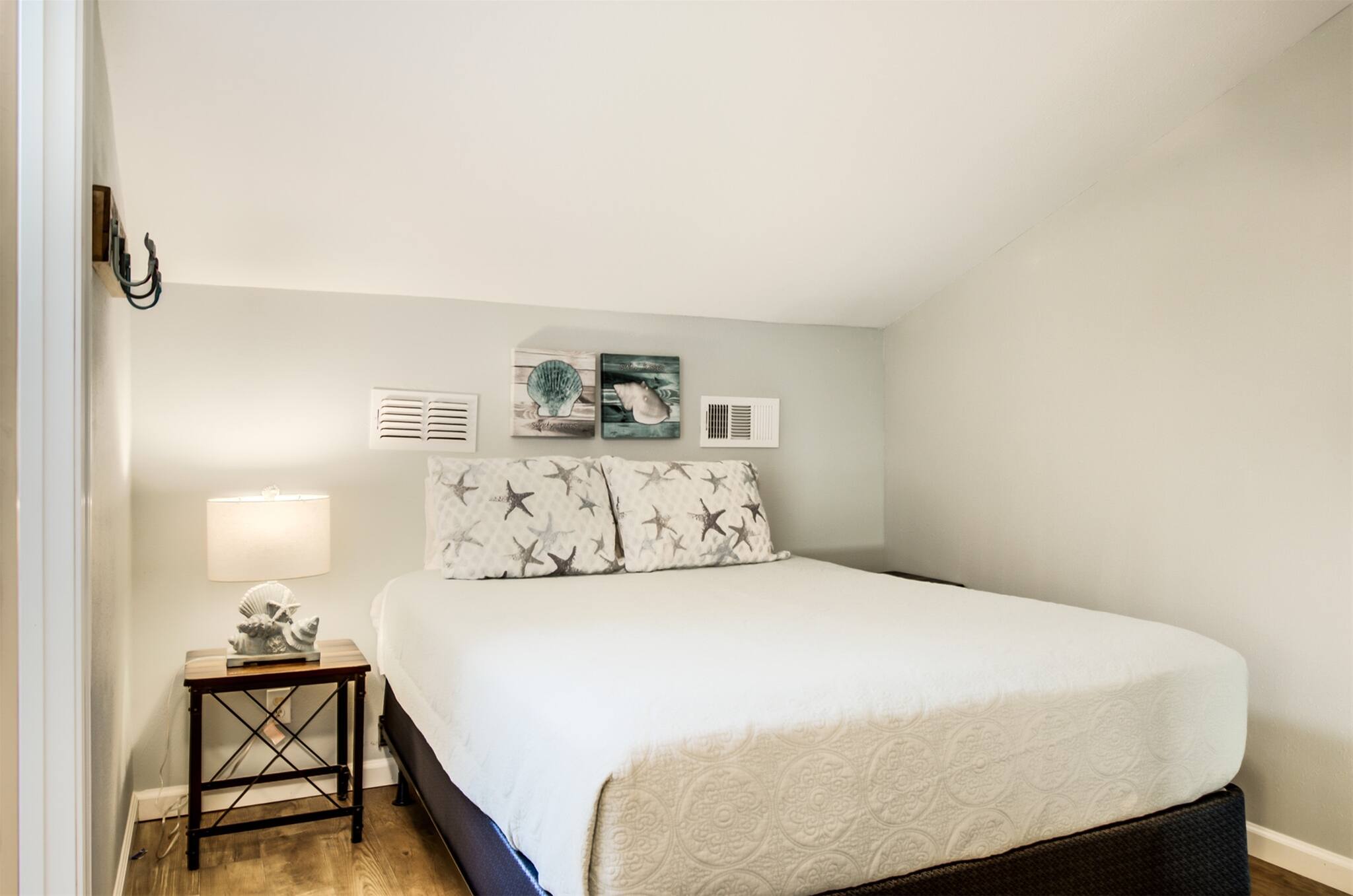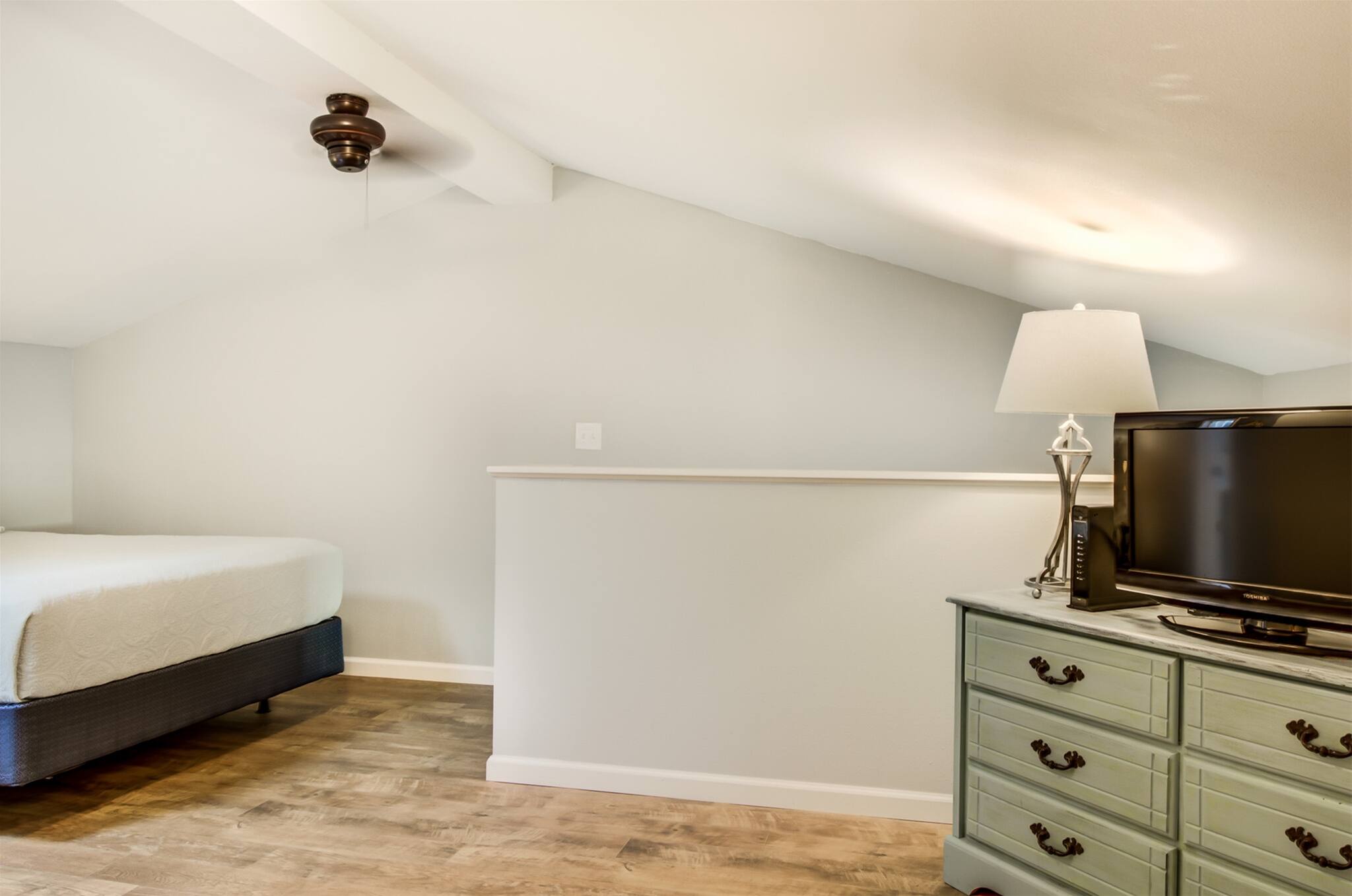 The upstairs loft is furnished with both a king-size and full-size bed in addition to a second full bath.