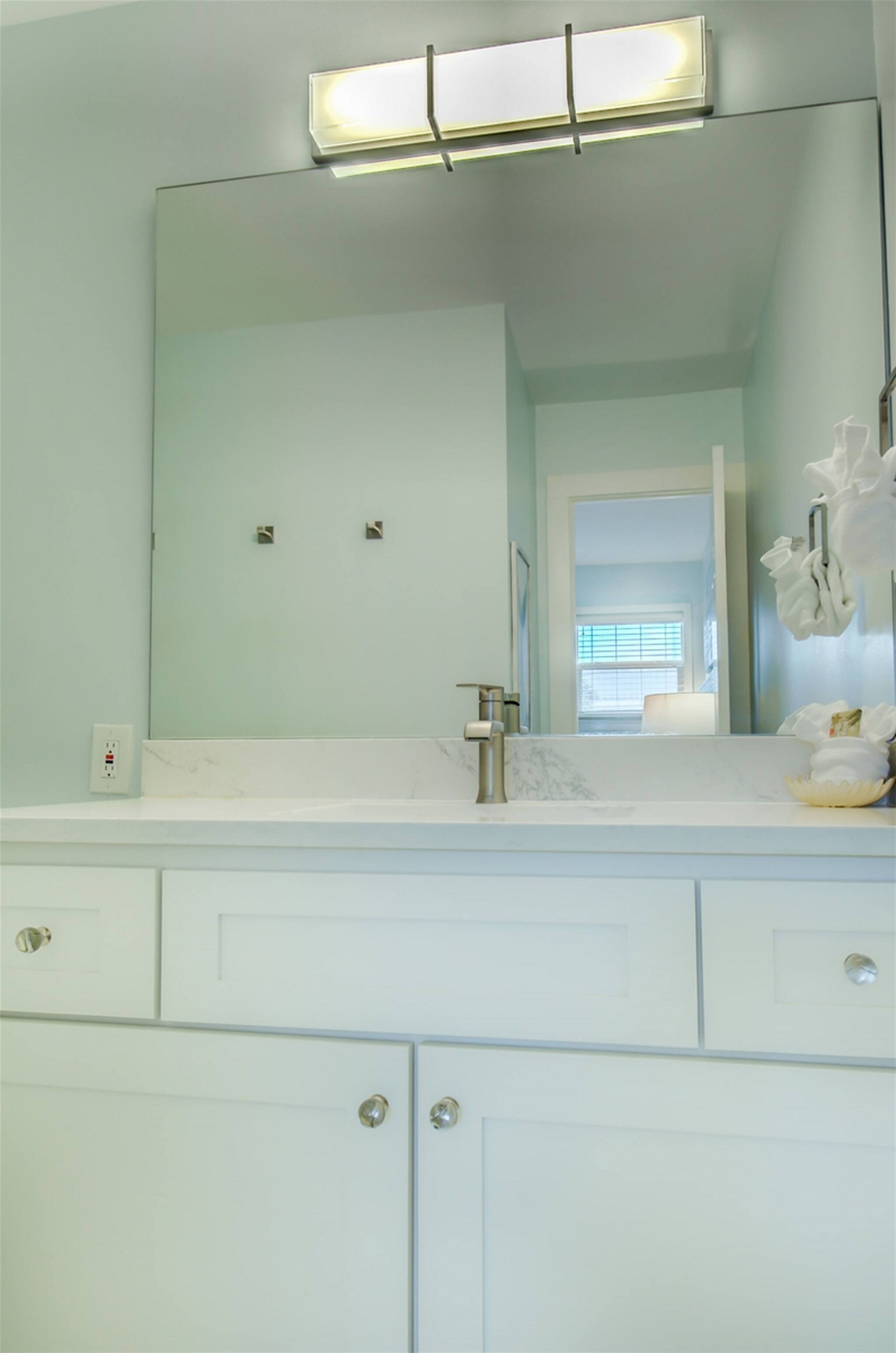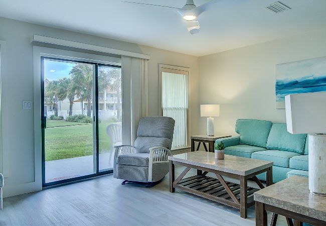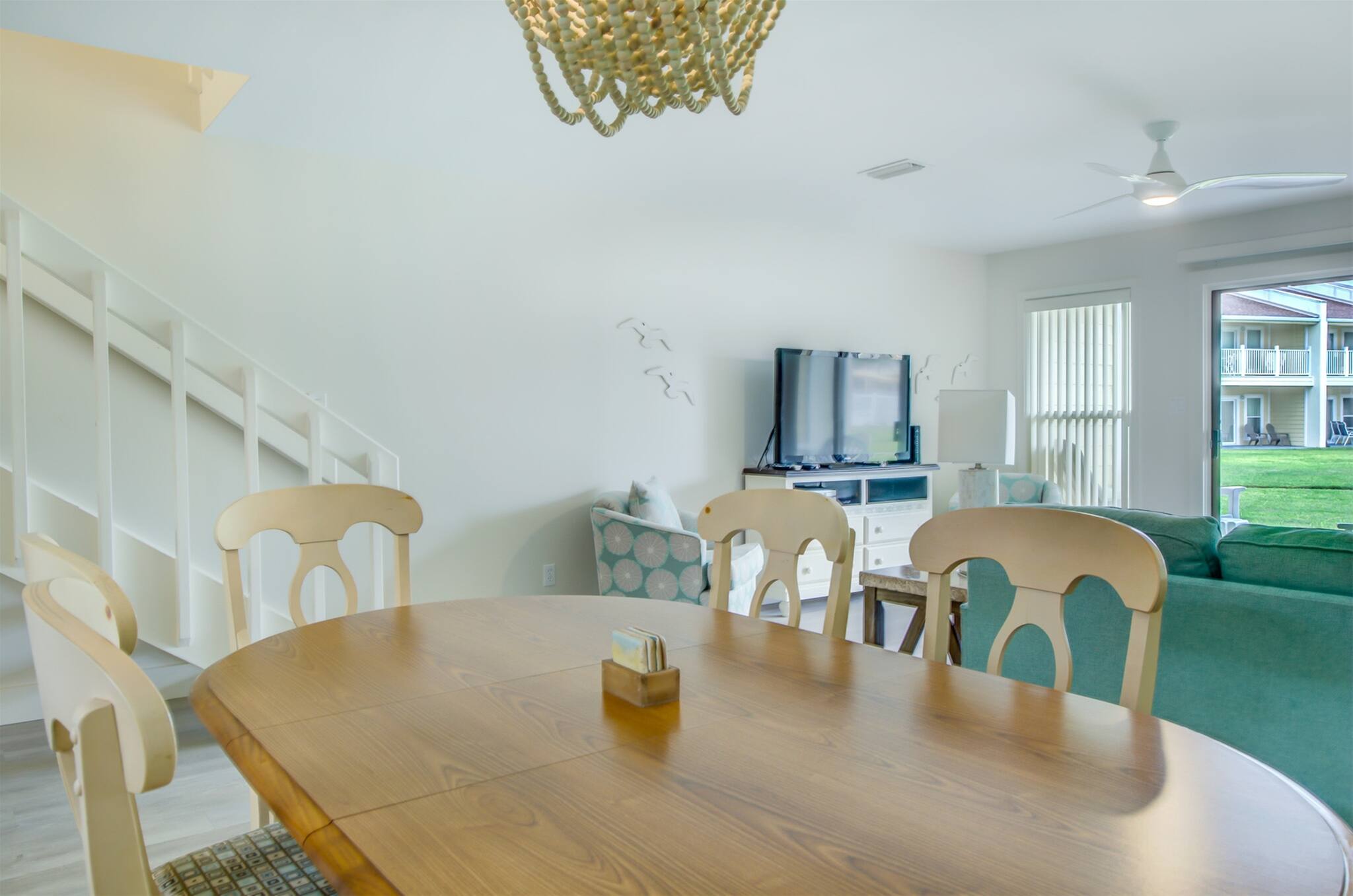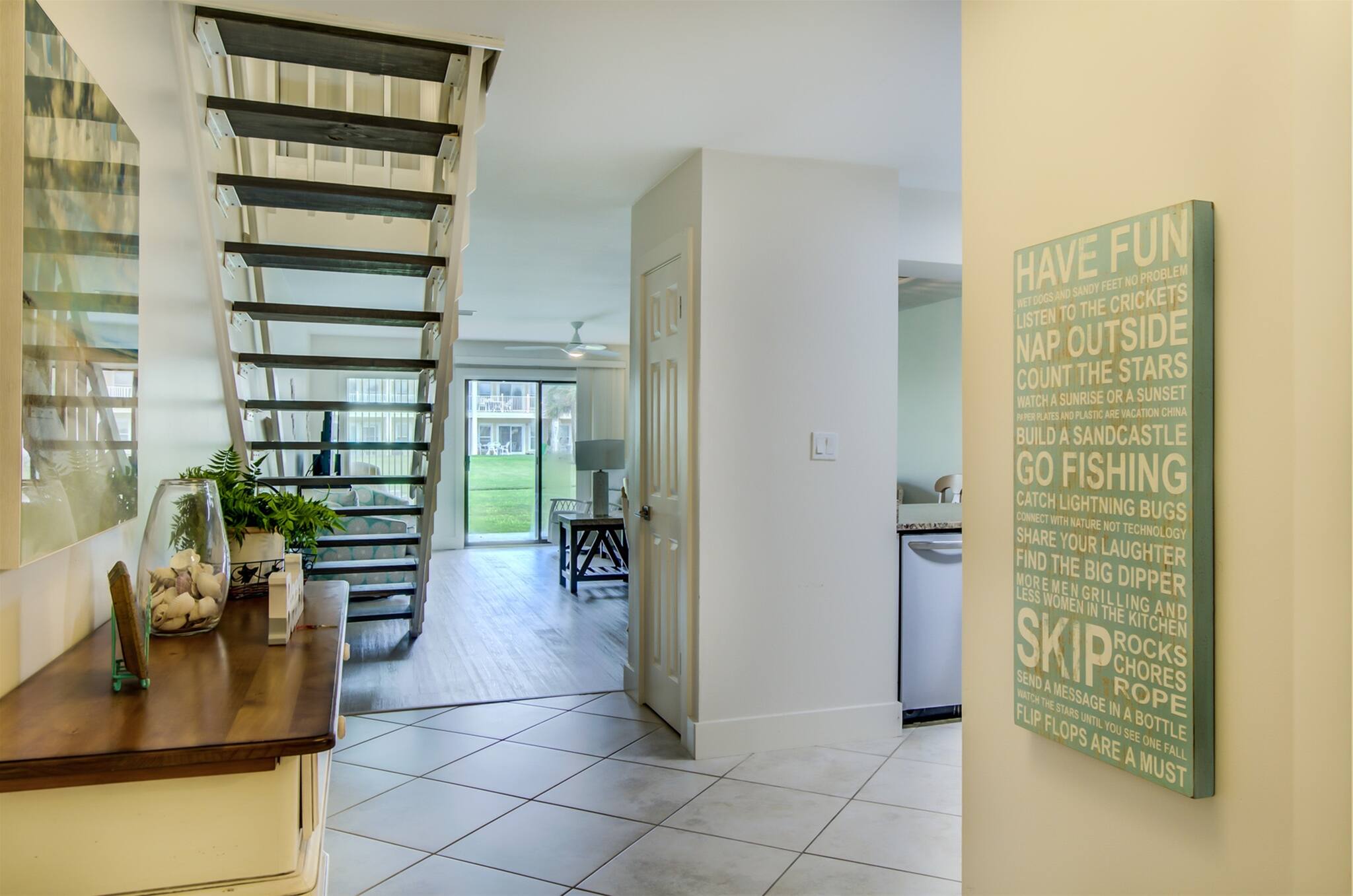 Step outside onto the second furnished patio to savor your morning coffee with views of the pool. Guests are encouraged to take full advantage of the townhome’s amenities as well as those on the property, including a saltwater swimming pool (heated seasonally), charcoal grills, and private beach access.
