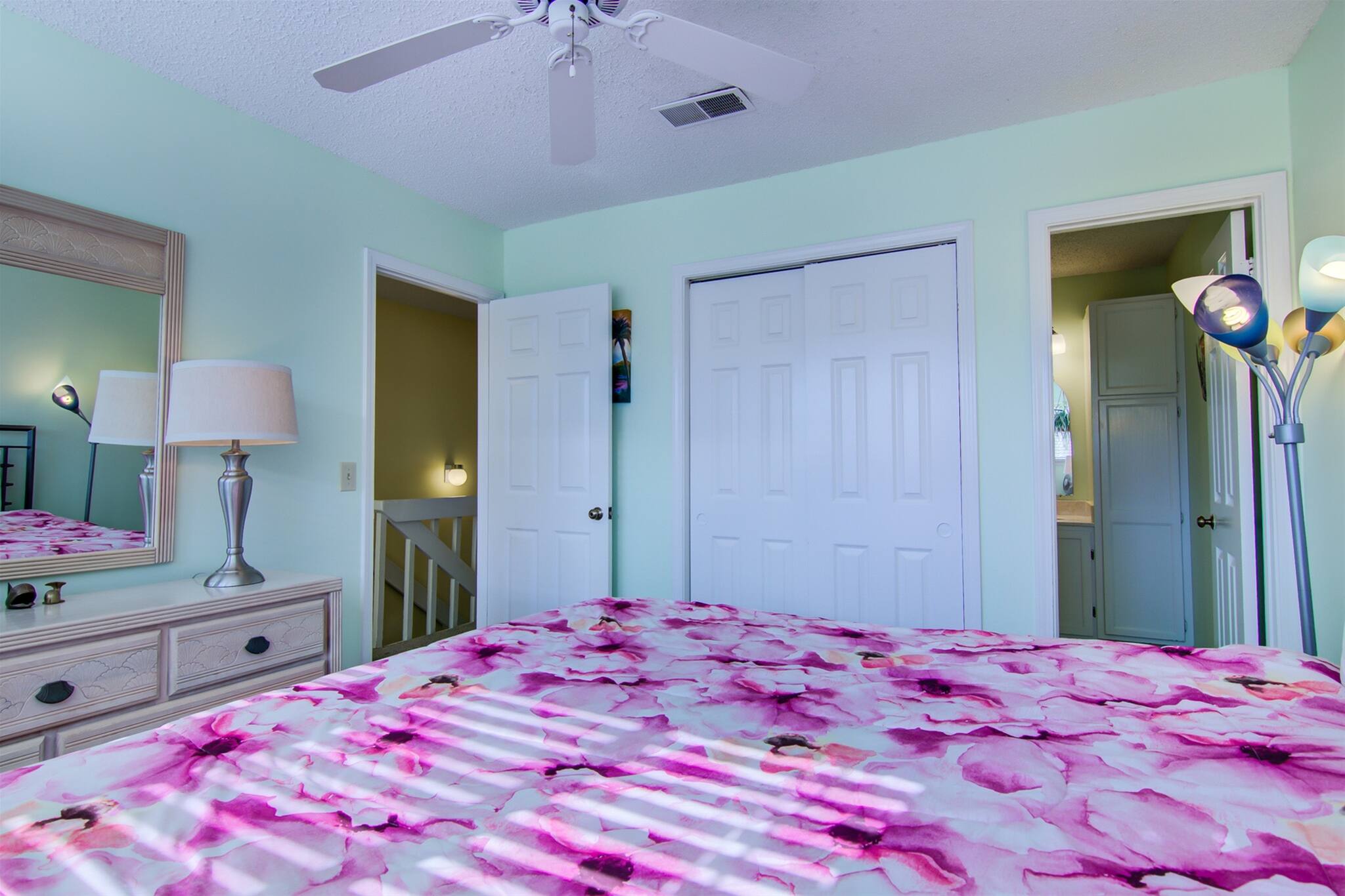 Welcome to 2B at Seacove, a beautifully updated three-bedroom, three-bathroom townhome designed for comfort and relaxation. Perfect for families or groups of up to 8 guests, this spacious two-story retreat offers the ideal blend of homey charm and beachside convenience. The home features Two Master Bedrooms both feature King-sized beds with one offering a private balcony with seating overlooking the pool. Additional sleeping spaces- a smaller third bedroom with bunk beds and a Queen-sized sleep sofa in the living room. There are three Full Bathrooms ensuring everyone has plenty of space. A fully equipped kitchen is complete with a microwave, dishwasher, stove, refrigerator and everything needed to prepare and serve your home cooked meals. In home washer and dryer added connivence for longer stays. Complimentary Secure Wi-Fi & HDTV so you can stay entertained and connected.