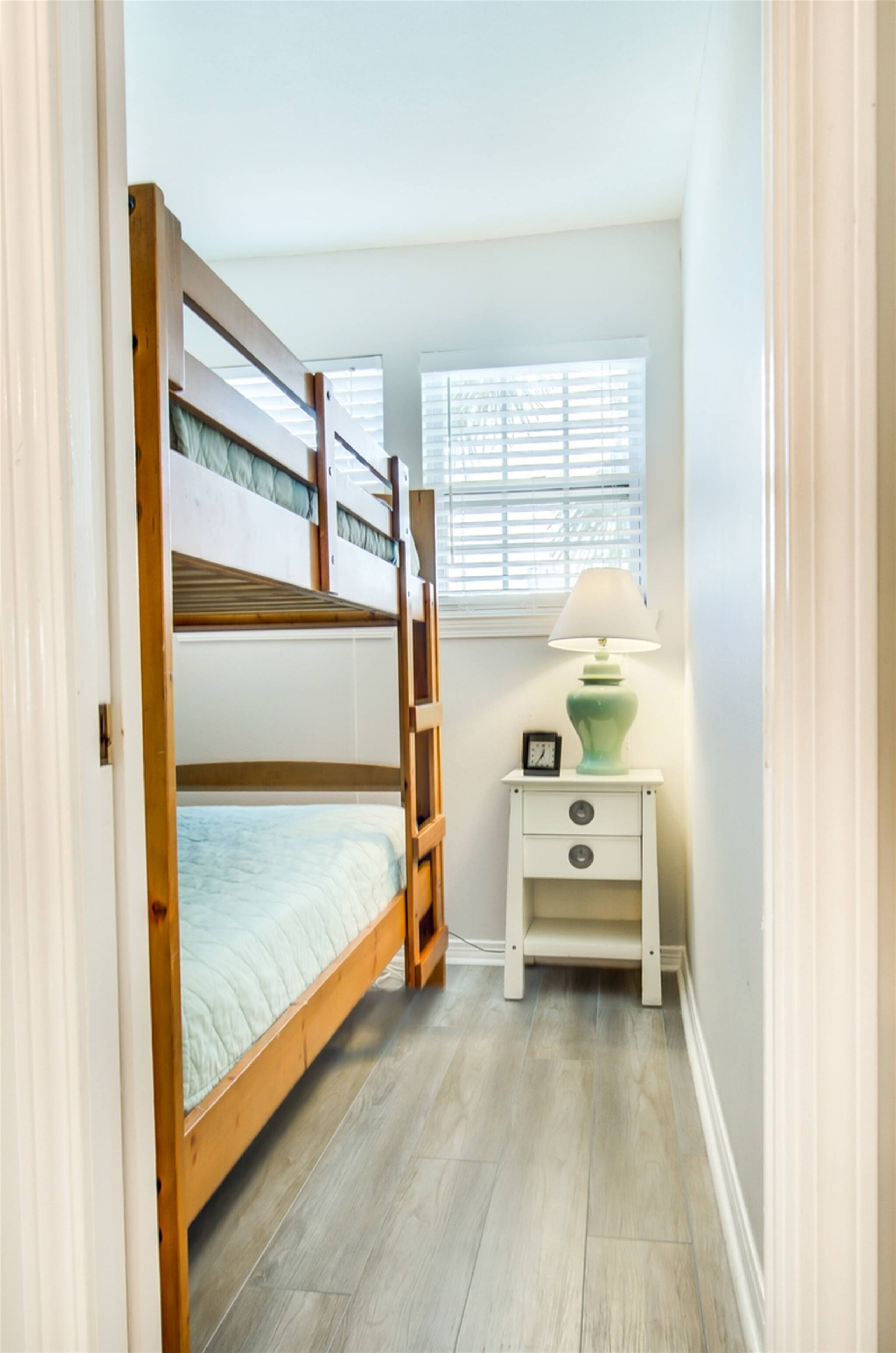 This tropical and light three-bedroom unit spans two stories and includes a rear patio overlooking the pools with a porch swing. The Destin townhome has two master bedrooms, each with a King-sized bed and HDTV and one with a private balcony, and a Twin-sized bunk bed in the third bedroom. Additional sleeping space can be found on the Queen-sized sleeper sofa in the living room. The vacation condo comfortably accommodates eight guests with its bedrooms and two and a half baths. Make yourself at home in this unit with its convenient features like a private washer and dryer, complimentary secure Wi-Fi, and a kitchen complete with a microwave, stove, fridge, and dishwasher. All of our pet-free units are also non-smoking for guests’ comfort. You’ll have two dedicated parking spaces in front of your unit and easy access to the overflow unit should you need it. During your stay, be sure to enjoy our salt water pool from 8 a.m. to 10:30 p.m, heated seasonally, the private beach access, and family-friendly amenities like the children’s play area and BBQ grilling stations. Book 5C for your Emerald Coast vacation!