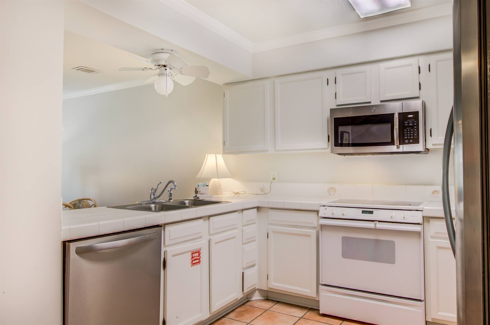 Let the tropical hues lure you into Seacove’s 4A, a lovely three-bedroom vacation townhome in Destin, FL. The two-story unit has two master bedrooms, One with a King-sized bed , Second Master Queen Bed, a guest room with bunk beds, and a Queen-sized sleeper sofa in the living room. Each room has an HDTV and there’s a private balcony off of one of the master bedrooms and overlooks the pool and courtyard. A secondary patio also overlooks the pool and both balconies are furnished. The unit has two and half baths and accommodates up to eight guests. This unit is located in the center of the property and has the most direct path to the pool and beach! When you’re spending time in the vacation condo, make good use of the fully-equipped kitchen that has a refrigerator, dishwasher, microwave, and stove and a dining table and extra barstools for meal time. Complimentary secure Wi-Fi is offered throughout the townhome and the main bedrooms have TVs and there’s an HDTV and DVD player in the main room. For your convenience, the unit has its own private washer and dryer. Your stay includes two dedicated parking spaces in front of your unit with access to a nearby overflow lot and the use of all of our on-property amenities like the salt water pool, private and gated beach access, BBQ grilling stations, and safe play areas for kids and adults. Reserve 4A for your Destin vacation!
